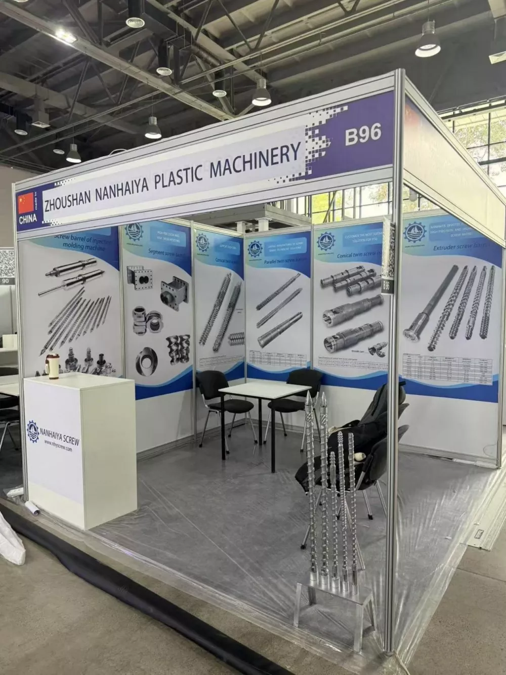 Од 21. до 23. септембра 2025., Зхоусхан Нанхаииа Пластиц Мацхинери Цо., Лтд. је на свом штанду приказао своје умањене моделе завртња и цеви. Са својом водећом технологијом отпорном на хабање и прилагођеним решењима, производи су постали врхунац изложбе, привлачећи бројне купце из земаља Централне Азије као што су Узбекистан и Казахстан.